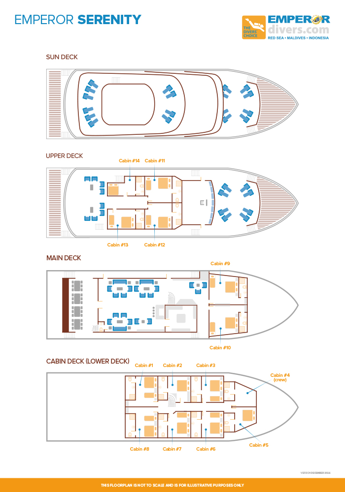 Ci si leva le scarpe in fase di imbarco per indossarle nuovamente a fine crociera, a bordo si cammina scalzi o con infradito. È consigliato un abbigliamento casual, si raccomanda di indossare pantaloncini e maglietta a pranzo e a cena e quando si scende a terra per visitare l’isola dei pescatori. Il bar fornisce ogni tipo di bevanda alcolica e superalcolica (non comprese nella quota). Ognuno può bere liberamente senza eccedere. Ai subacquei che consumano alcolici non sarà permesso partecipare all’immersione successiva.