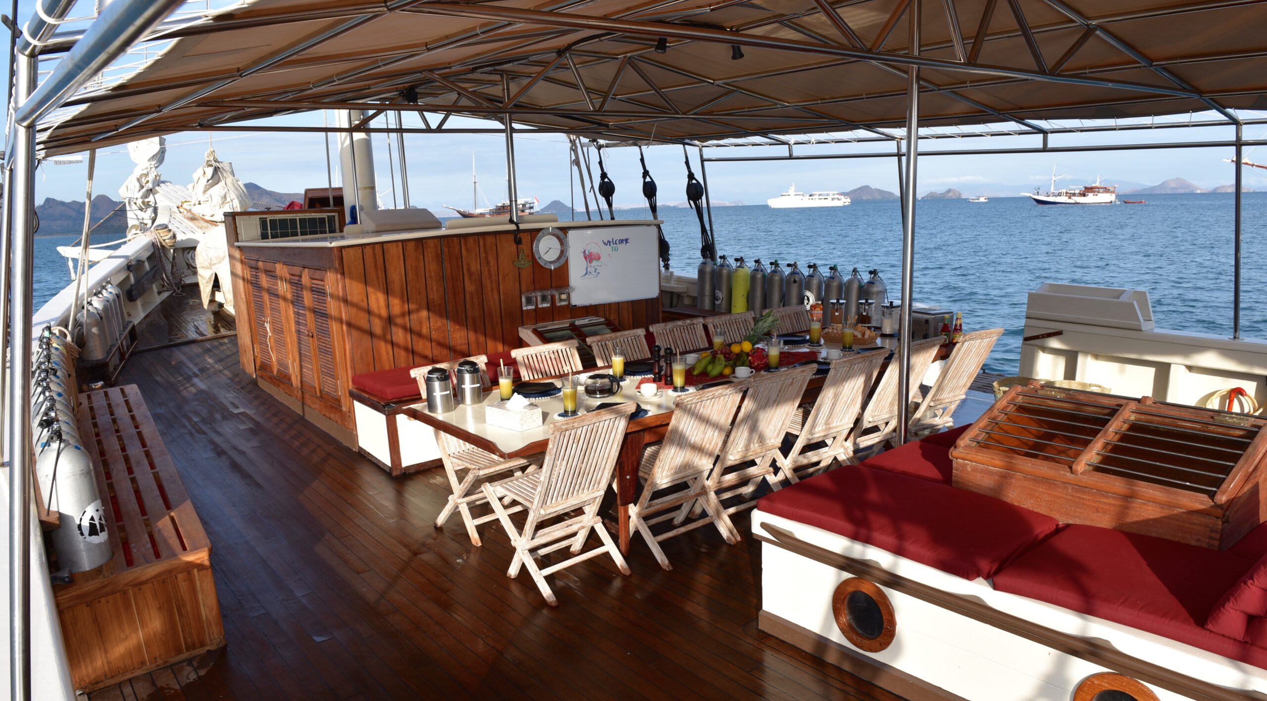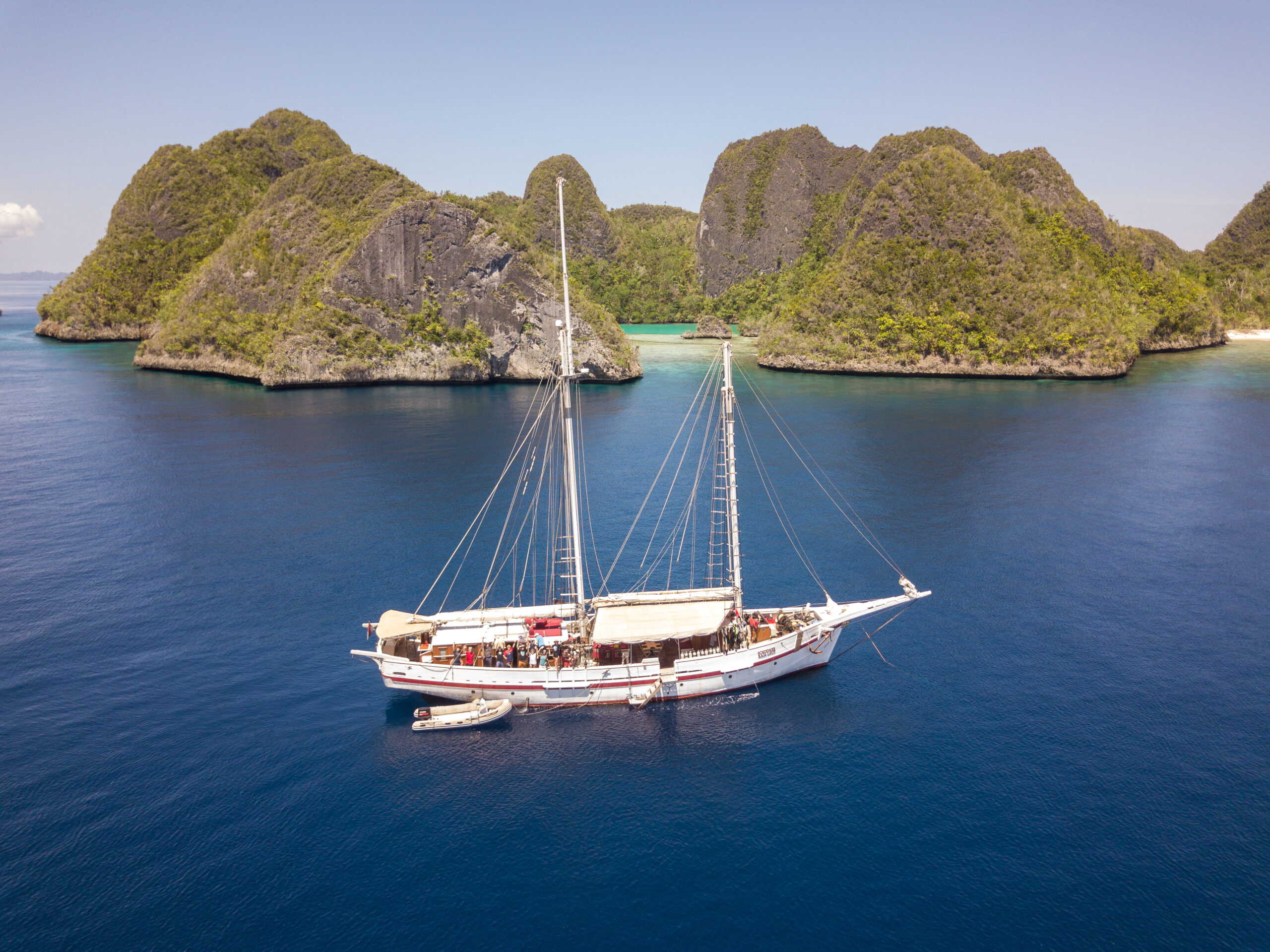 Costruito in legno massiccio tropicale e ispirato allo “stile goletta” offre una sistemazione raffinata per 12 ospiti in 6 cabine. Un’accogliente area lounge dove rilassarvi, il ponte superiore dove cenare all’aria aperta ammirando il panorama in continua evoluzione e lo staff sempre a vostra disposizione saranno i protagonisti della vostra vacanza insieme ad immersioni emozionanti, paesaggi unici e relax assoluto. Raja Laut significa “Re del mare” e salendo a bordo proverete una sensazione davvero regale nel navigare nei mari Indonesiani!