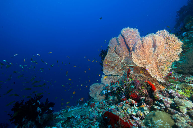 Raadbandhihuraa Kandu, pass a ovest dell’atollo con corrente in entrata, nuoterete immersi in nuvole di fucilieri, pesci chirurgo e dentici per citarne solo alcuni. La barriera degrada verso il basso in terrazze che ricordano un giardino giapponese. Uno sguardo nel blu per vedere squali, tonni e carangidi. Le correnti oceaniche hanno direzione est-ovest e regalano una fantastica visibilità fino a 40 metri con presenza costante di squali grigi, tonni, aquile di mare, carangidi e barracuda ma anche mante, squali martello, squali balena e tante inaspettate soprese! Le pareti esterne dell’atollo di Meemu hanno splendide pareti tappezzate da alcionari blu, gialli e rosa e grandi ventagli di gorgonie.