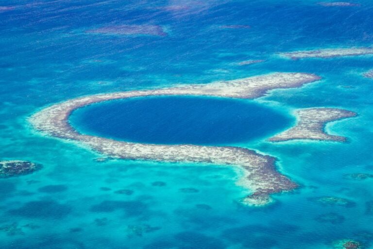 Se sei un subacqueo appassionato, The Blue Hole in Belize è uno dei siti di immersione che sono sulla tua lista dei desideri. Questa è l’immersione simbolo del Belize e si estende per più di 300 metri ed è profonda circa 140 metri ed è quasi perfettamente rotonda. Questo buco rotondo e blu si trova in posizione centrale ed è solo un breve tragitto in barca dalla maggior parte dei cayos. Tuttavia, sii preparato perché questa è un’immersione profonda. Seguendo la vostra guida subacquea, scenderete quasi immediatamente a circa 40 metri e avrete solo 8 minuti per esplorare la fila di stalattiti che sono sospese al soffitto della caverna. Una volta giunti alla fine dei vostri 8 minuti, inizierete a risalire la parete fino a 15 metri, che è il punto in cui l’acqua dolce passa allo strato superiore di acqua salata. Mentre si nuota, di solito si è accompagnati da squali di barriera e squali toro, il che rende l’esperienza incredibile. Se avete la possibilità di visitare questo sito, non solo dovreste sperimentarlo sott’acqua, ma se potete, salite in elicottero e vedetelo da un punto di vista Birdseye, è oltre ogni immaginazione e le foto non gli rendono giustizia.