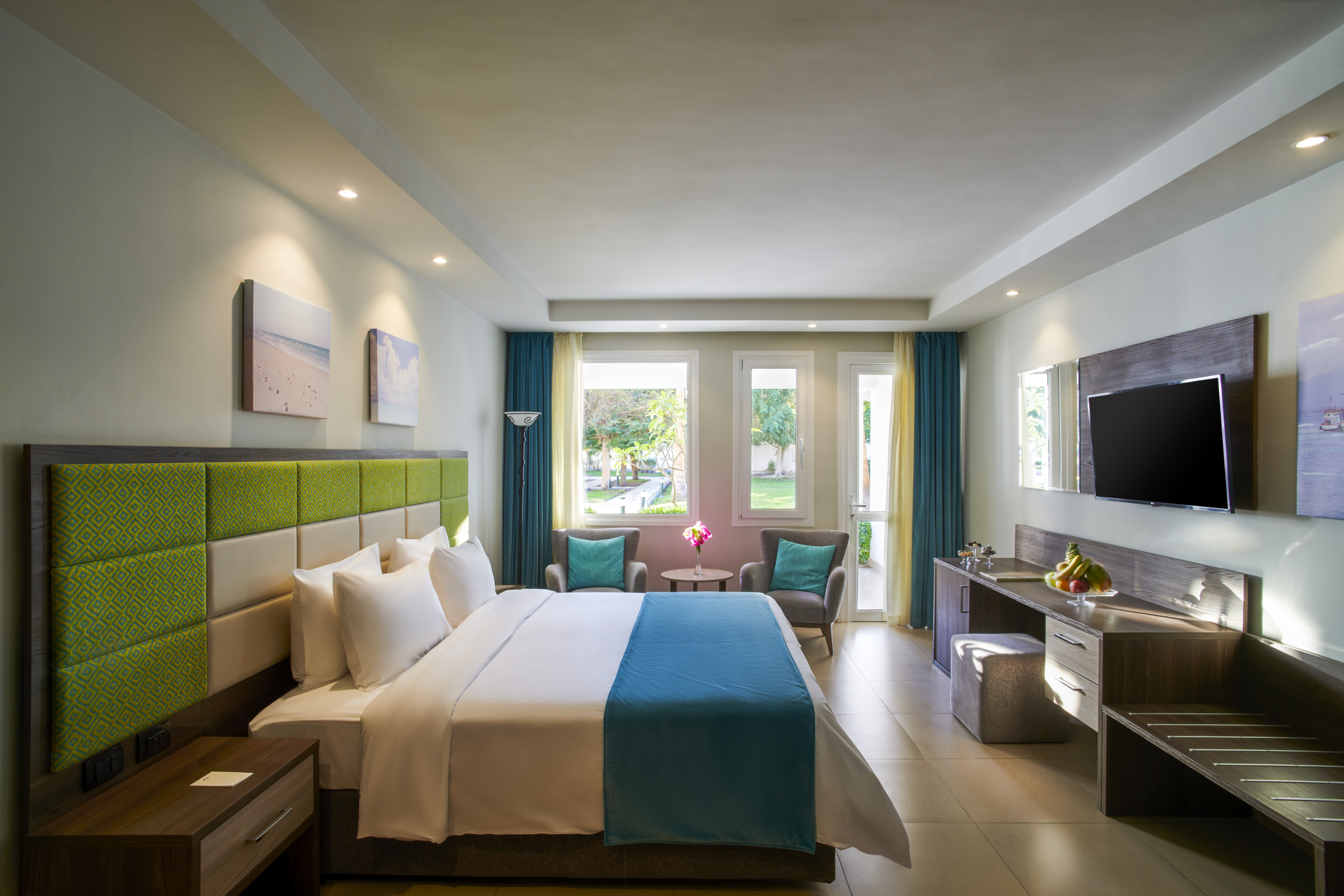 Camera Palm Front Area. Situate nella Palms Area, queste camere di 35 mq dell’hotel risplendono con accenti di blu e verde fresco. Rispetto alle camere Standard, sono un po’ più vicine al Mar Rosso con la sua spiaggia poco profonda, raggiungibile in circa 400-600 metri. Come suggerisce il nome, il balcone o la terrazza offrono una splendida vista sul parco verde del resort. Occupazione massima: 3 adulti o 2 adulti e 1 bambino, possibilità di letto king-size, letto aggiuntivo o divano letto.