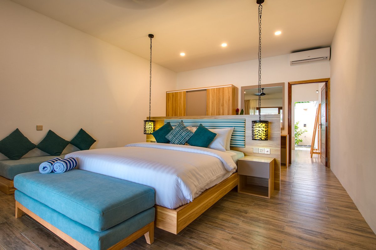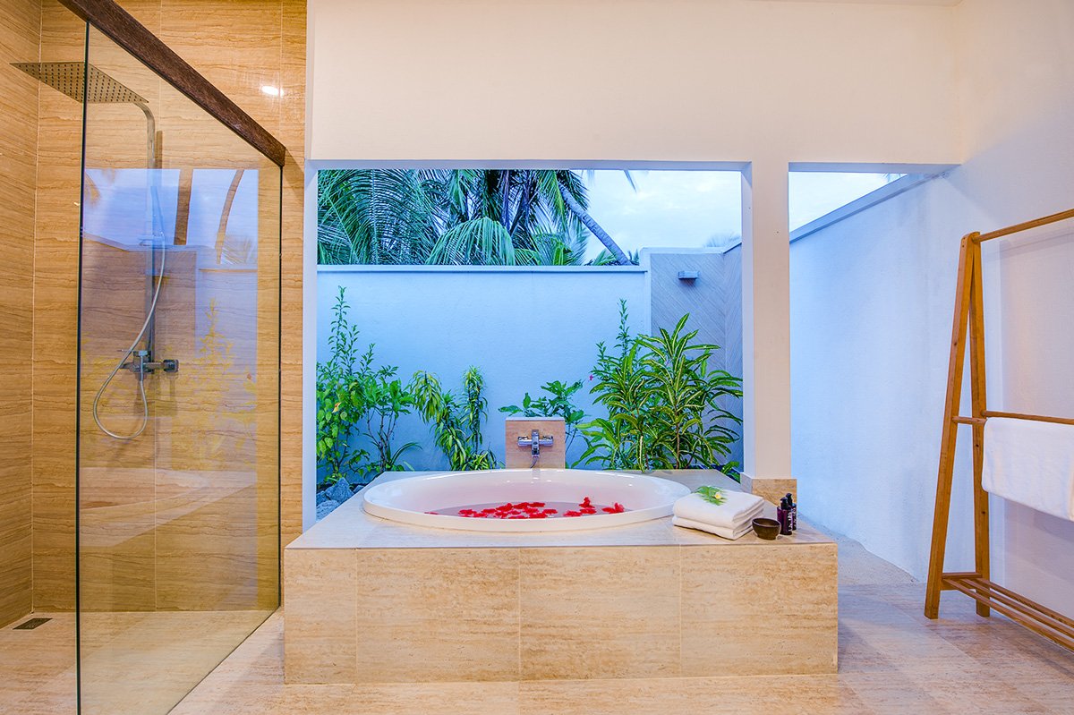 Camera con Vista Oceano Provate l’esperienza di una fuga maldiviana senza precedenti nella nostra Villa con vista sull’oceano. Circondata da un fogliame lussureggiante e da palme ondeggianti, questa villa offre una vista mozzafiato sull’Oceano Indiano. Godetevi la massima privacy e il relax mentre vi rilassate sul vostro lettino da giorno all’aperto o leggete un libro all’ombra della fresca brezza oceanica Villa di 77 mq, Fronte spiaggia con vista sull’oceano, Terrazza con lettino e tavolo da pranzo, Design luminoso, confortevole e minimalista, Materiali e colori naturali, Bagno privato con doccia esterna, Occupazione 3a o 2a+1c